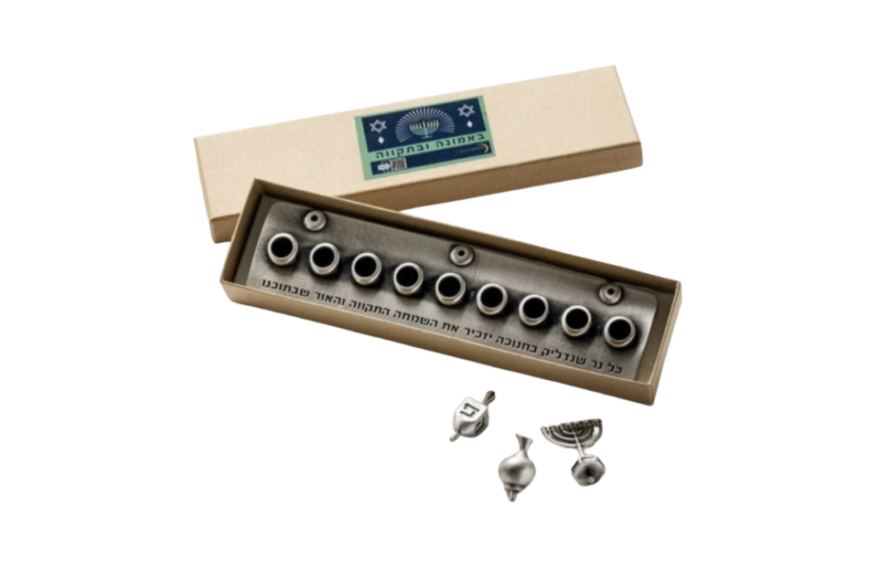 חנוכיה לצעירים, חנוכיה לנכדים, חנוכיה עם סמלים, מתנה ישראלית לחו"ל